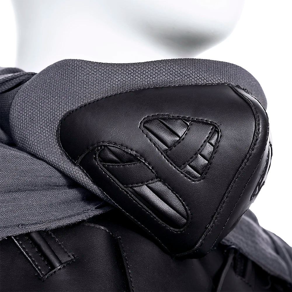 The costume features a form-fitting jumpsuit complete with intricate tubing and paneling that mimic the moisture-recycling technology of the stillsuit. The fabric is lightweight and breathable, ensuring comfort while maintaining the rugged, survivalist aesthetic. Detailed knee pads, wrist guards, and a utility belt add authenticity and practicality, making you feel like a true desert nomad. Accessories include a cape, belt, breastplate, mask and plastron.