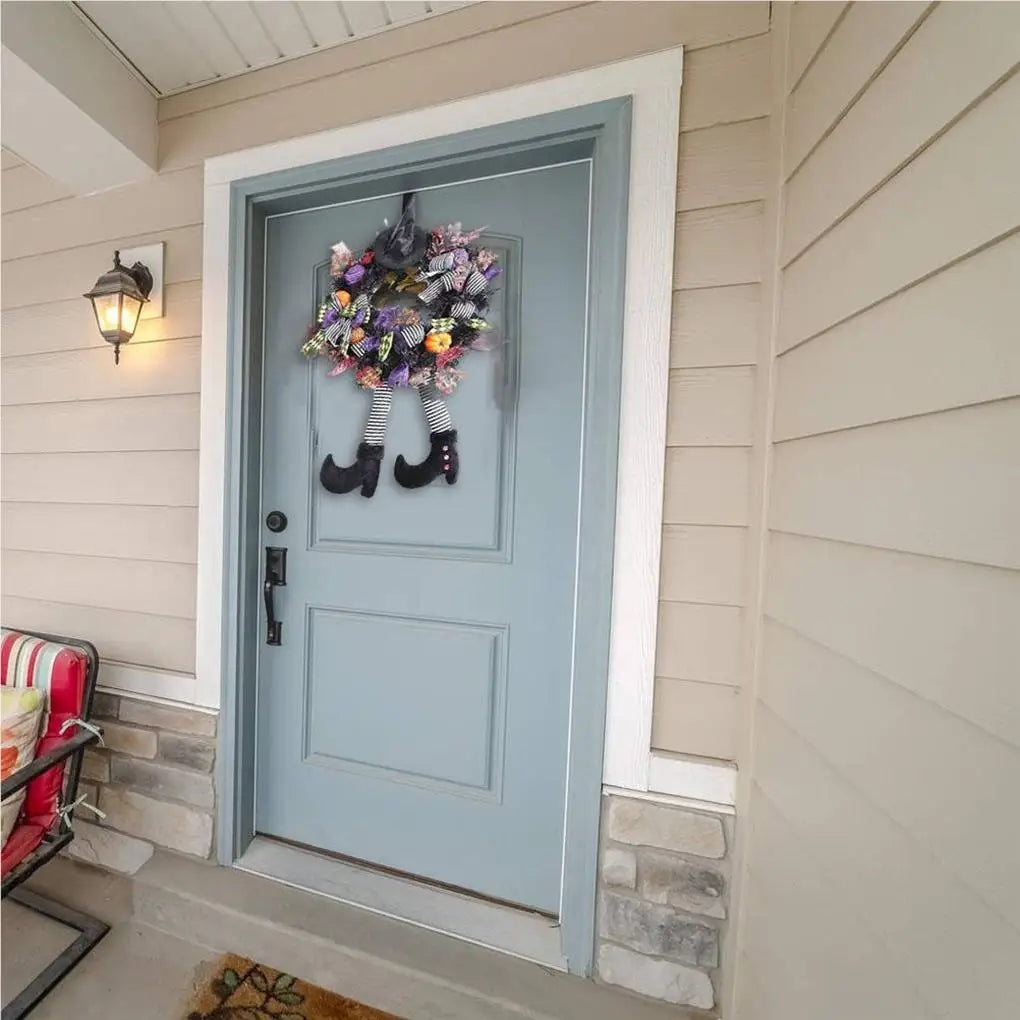 Introducing the Witchy Witch Wreath, the perfect addition to your Halloween decor. This wreath features whimsical witch legs hanging out, adding a spooky touch to your home. This wreath is durable and long-lasting. Make your home stand out this Halloween season with our charming Witchy Witch Wreath.