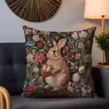 William Morris Easter Bunny Pillow – Vintage Floral Double-Sided Print